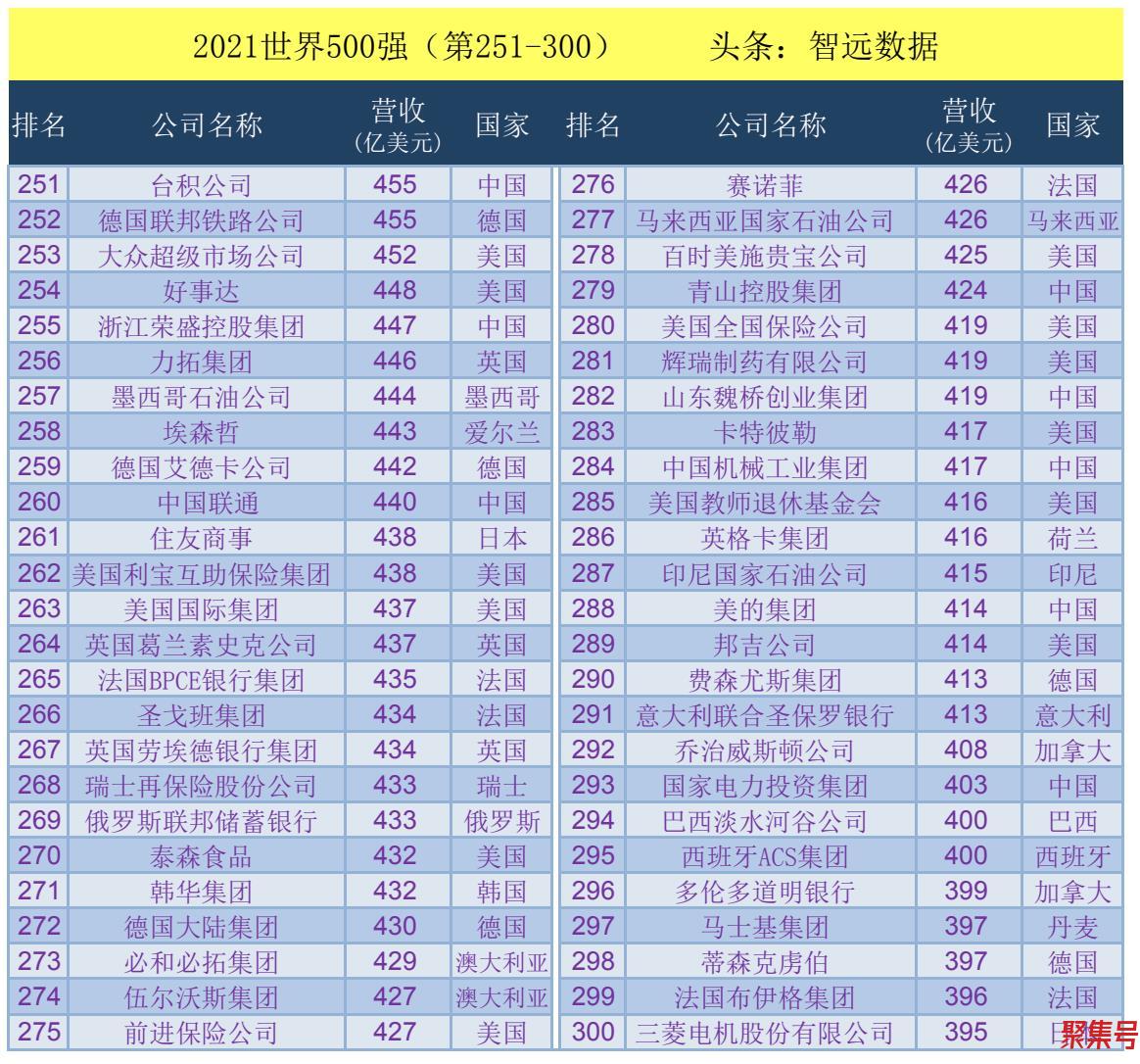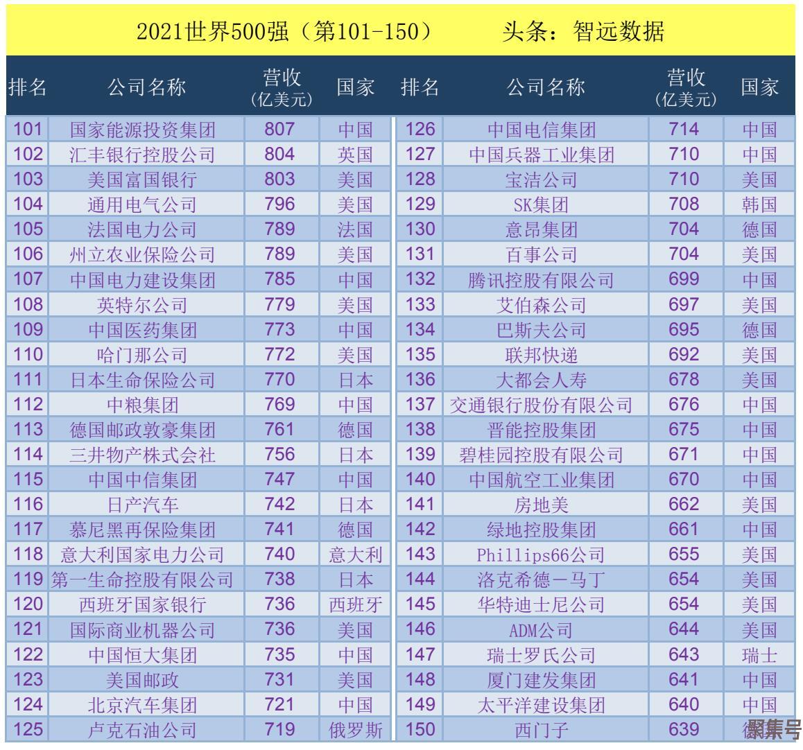 中国大陆(包含香港)共有135家企业榜上有名,加上台湾地区,全中国共有143家企业进入世界500强榜单,上榜数量创下历史新高。2021《财富》世界500强