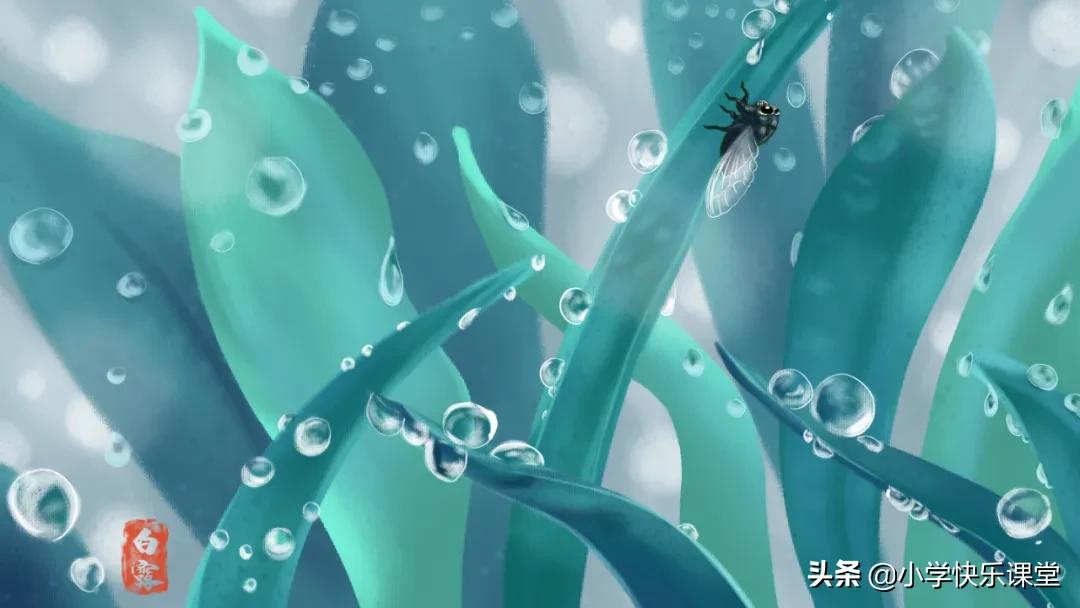 8、在池塘的深处,水甲虫在活泼地跳跃着,它的前翅的尖端带着一个气泡,这个气泡是帮助它呼吸用的。它的胸下有一片胸翼,在阳光下闪闪发光,像佩带在一个威武的大将军胸前的一块闪着银光的胸甲。在水面上,我们可以看到一堆闪着亮光的“蚌蛛”在打着转,欢快地扭动着,不对,那不是“蚌蛛”,其实那是豉虫们在开舞会呢!离这儿不远的地方,有一队池鳐正在向这边游来,它们那傍击式的泳姿,就像裁缝手中的缝针那样迅速而有力。