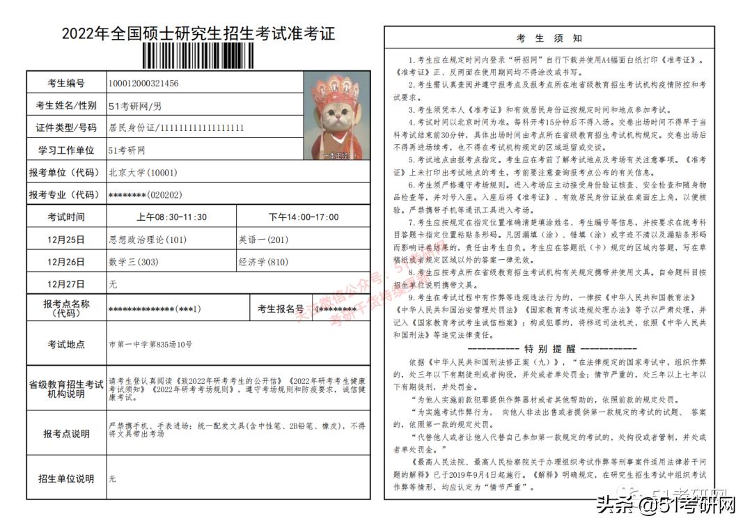 3、准考证在初试、查成绩、复试的时候都会用到,部分学校入学的时候也有要求。所以,保存好准考证的电子版很重要,多打印几张也无妨,以备不时之需。
