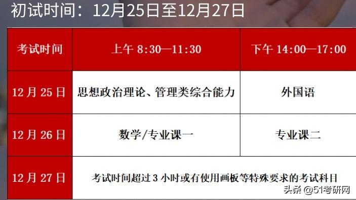 1、2021年考研初试的时间是:2021年12月25日-12月26日(超过3小时科目在27日进行)。