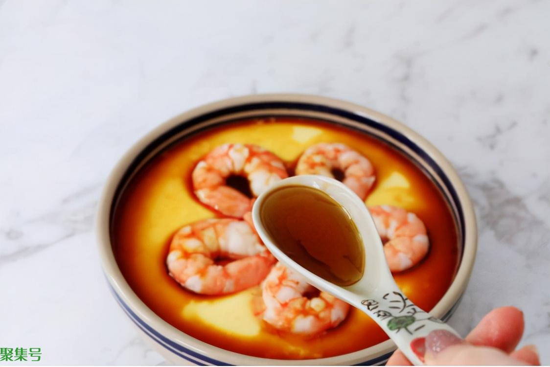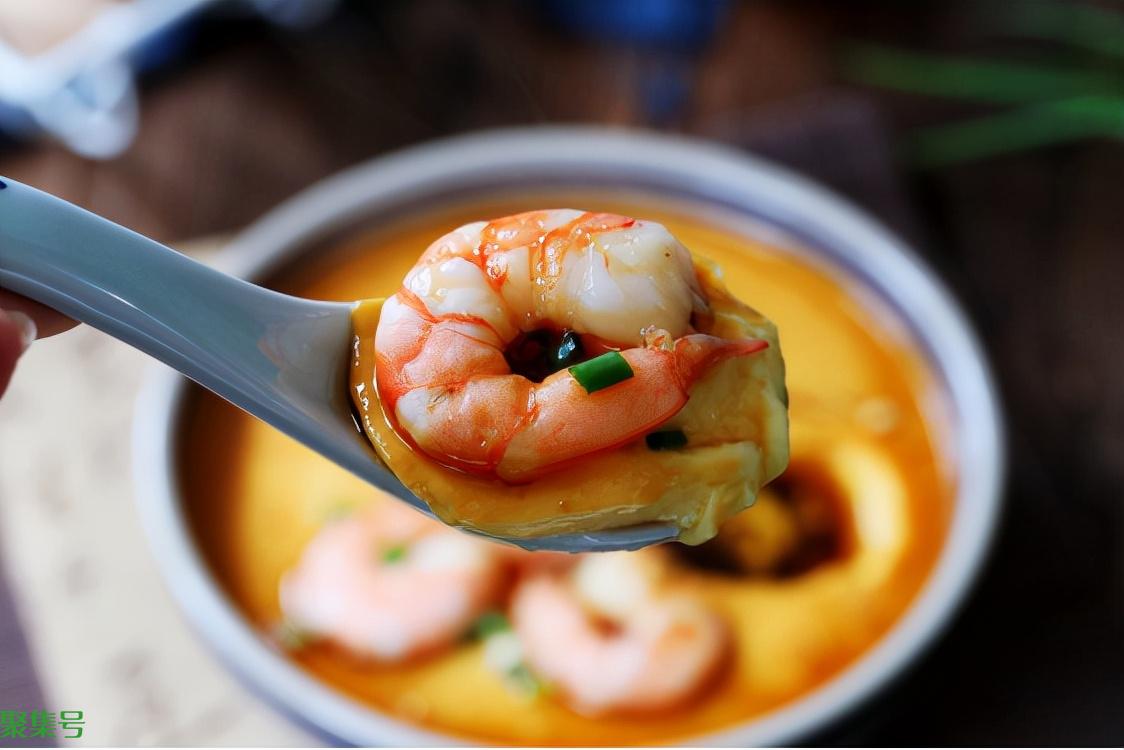 【所需配料】:一勺香油,一勺料酒,八个大虾,三个鸡蛋,一勺生抽,两克食盐,全蛋液一点五倍的温水。