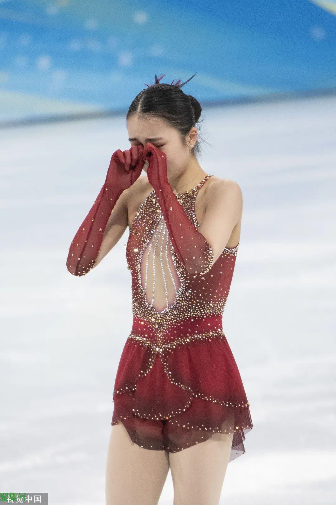 一天后朱易再次登台,伴随着《落日大道》音乐的结束,朱易终于完成了自己在团体赛中的所有内容——自由滑落幕,她再没能控制自己,在冰面上掩面啜泣。