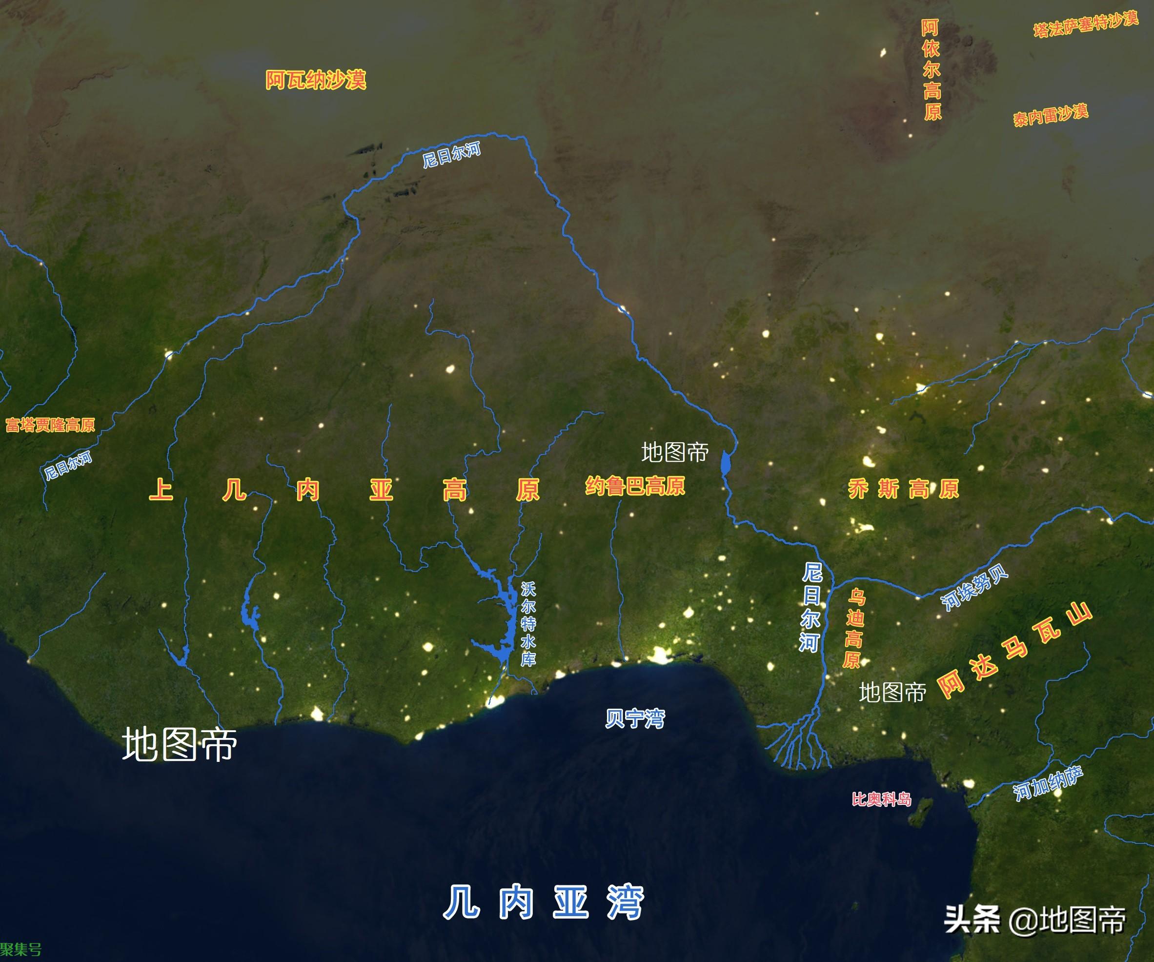 1960年,尼日利亚从英国独立,定都拉各斯。拉各斯本来是一个海边小岛,不在尼日尔河流域上,位于尼日利亚西南部,靠近几内亚湾。英国人在这里建了港口,再扩张到岸上,形成拉各斯城市格局。尼日利亚延续了英国的布局,拉各斯开发程度远高于内陆其他地方,都会区人口达到2000万以上,是非洲人口最多的城市。