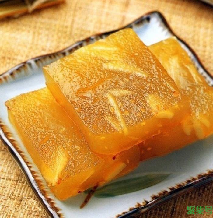 马蹄糕是广东省广州市、福建省福州市和广西壮族自治区南宁市等地的一种传统甜点小吃, 其色茶黄,呈半透明,可折而不裂,撅而不断,软、滑、爽、韧兼备,味极香甜,喜欢吃甜食的朋友们可以试一试哦。