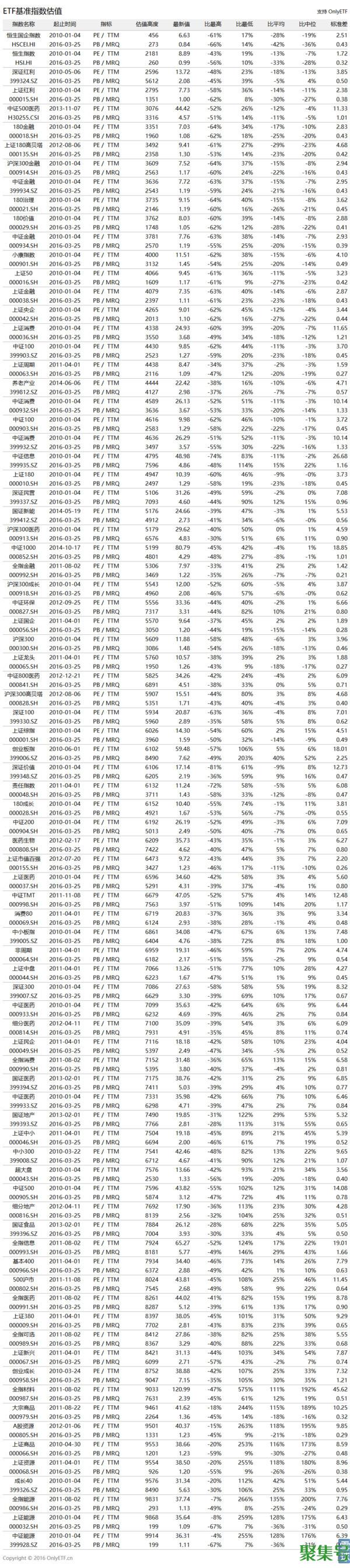 最后照例贴出截至今天的ETF基准指数估值数据,其中估值高度x表示:在统计区间总天数内,有万分之x天的估值比今天低。