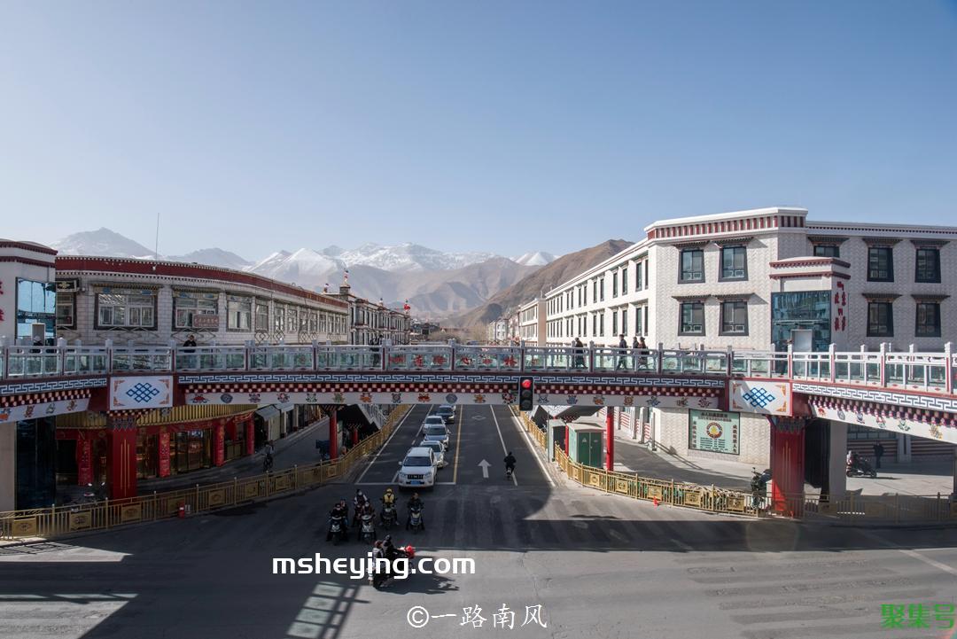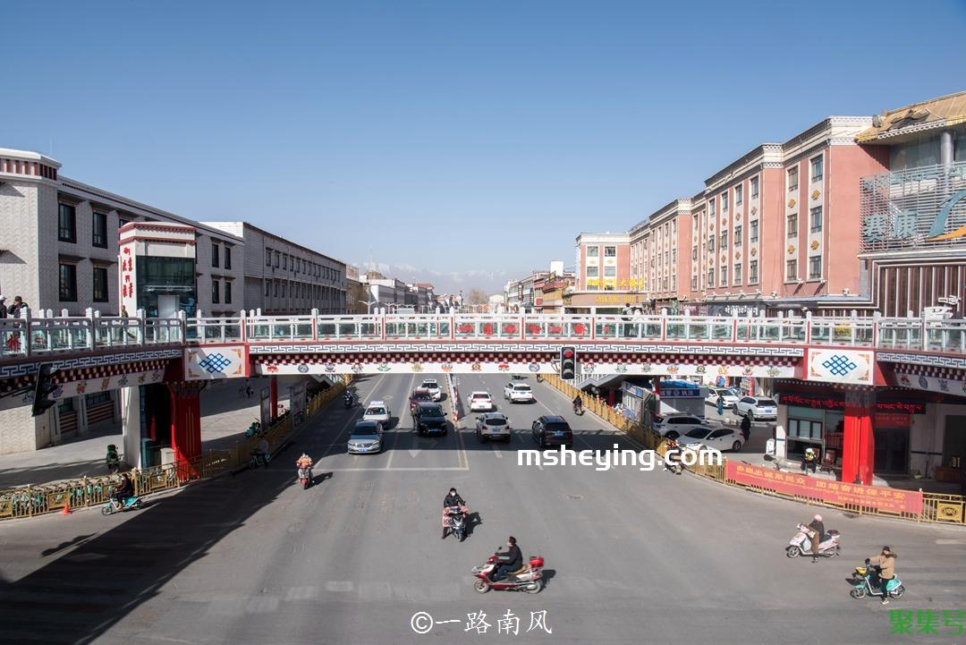 拉萨的马路宽敞整洁,交通秩序井然,部分路段还有环形过街天桥,这些天桥是理想的观景桥,本身也是一道景观,最人性化的地方是天桥通往地面的位置建有垂直电梯,对老年人或其他特殊人群非常友好。?