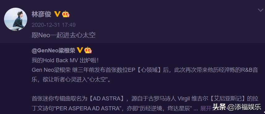 艺人就算是暂停工作休息,他也是应该继续更新社交平台,给粉丝报备情况的,但是林彦俊并没有更新动态,早在一个月之前,他的微博认证就从红v 变成了黄v,只要不发动态,这个账号就不活跃了。
