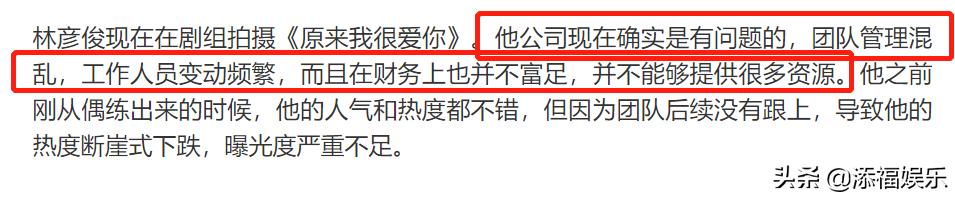 不知道是身体的原因还是心理的原因,林彦俊无法出现在大家面前,当然公司也不是很尽职尽责,不仅不给粉丝说明情况,据悉林彦俊的团队工作能力不行,存在着各种问题,这也导致林彦俊的名气一直上不来,明明是高位出道,现在却像出道了个寂寞。